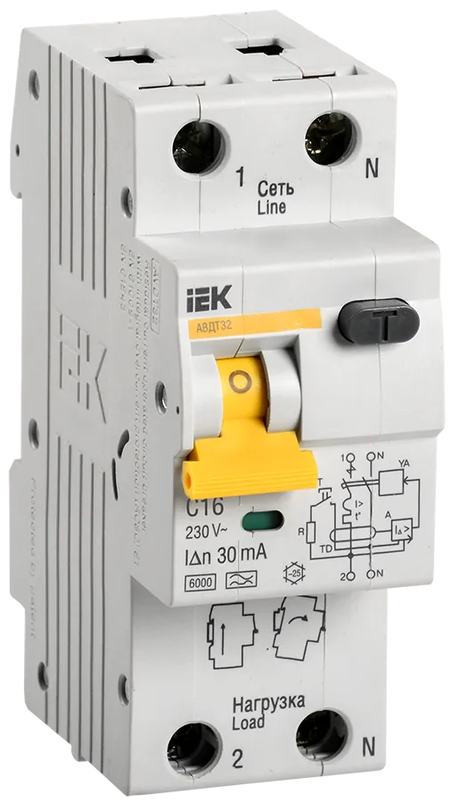 Дифференциальный автомат IEK АВДТ-32, 16А, C16, однополюсный+N (MAD22-5-016-C-30)
