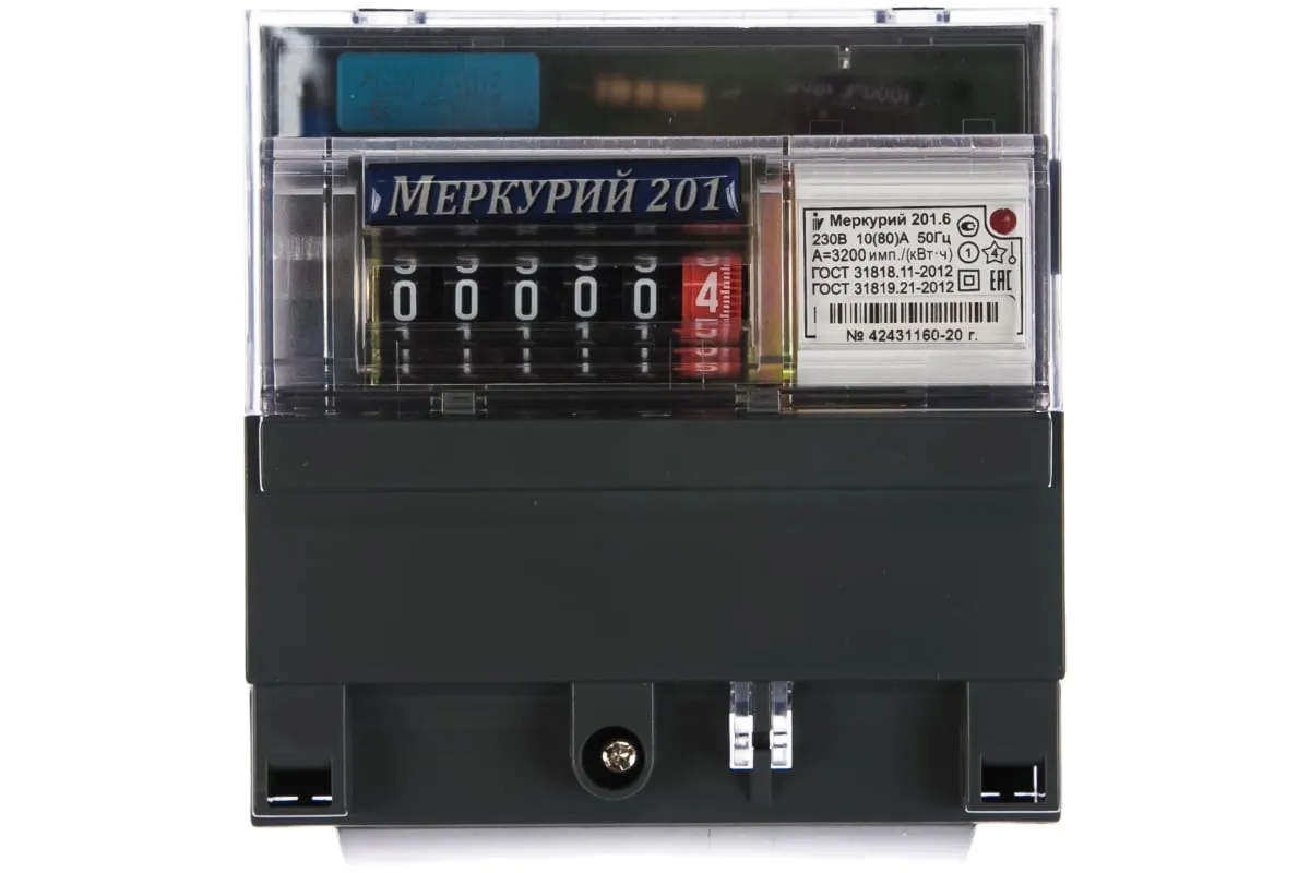 Счетчик электрический МЕРКУРИЙ 201,6 10(80)А/230В однофазный,однотарифный
