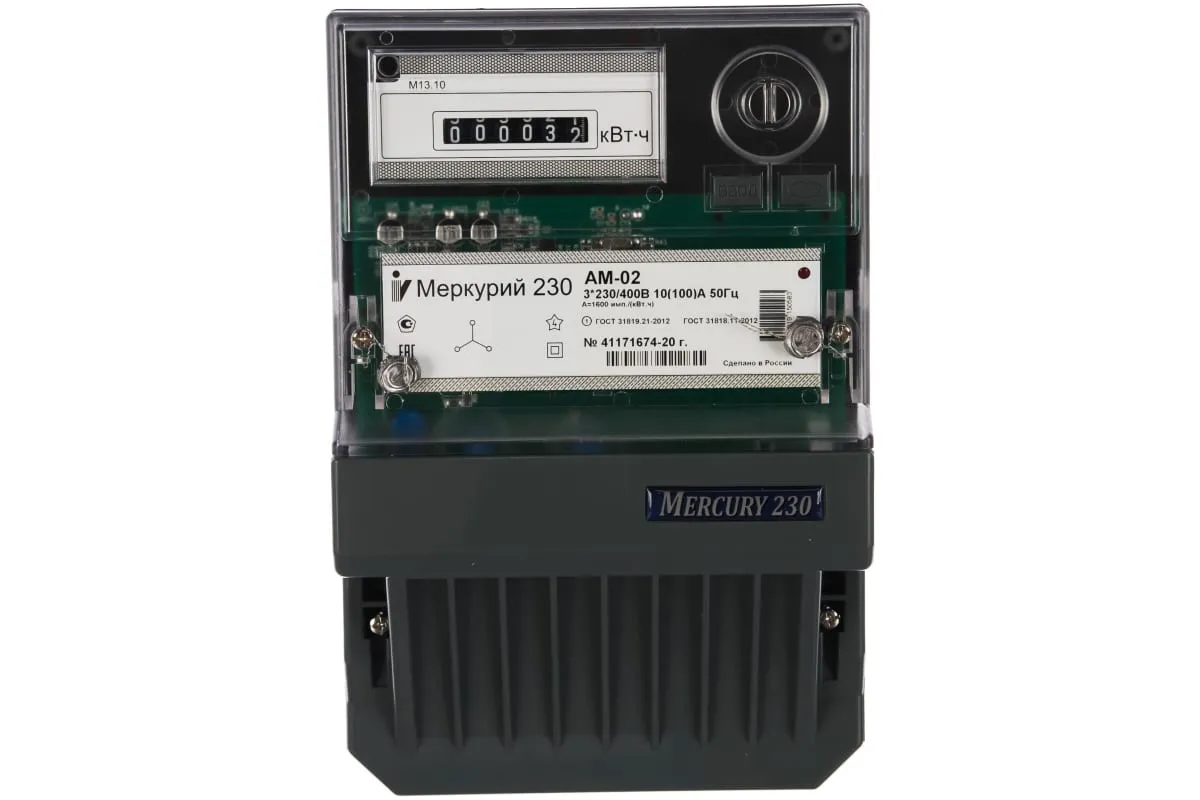 Счетчик электрический МЕРКУРИЙ 230 АМ-02 10(100)А/400В трехфазный,однотарифный