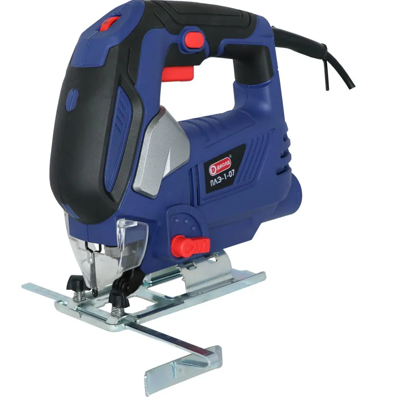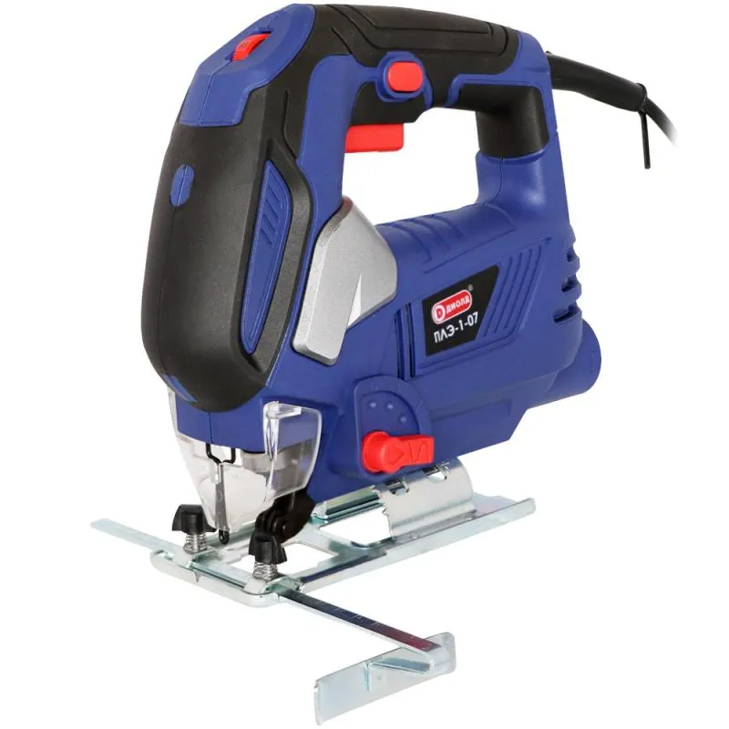 Пила лобзиковая электрическая ПЛЭ-1-07 предназначена для сквозного резания твердой и мягкой древесины, клееной древесины, фанеры, древесно-стружечных плит (в том числе с цементной связкой), древесноволокнистых плит (в том числе ламинированных), стали (в том числе нержавеющей), многослойных материалов, плексиглаза, изоляционных материалов, вспененного полистирола, армированных стекловолокном пластиков, картона, резины, кожи, ковровых покрытий и прочих мягких материалов, а так же керамики, стекла, газобетона, кирпича и абразивных материалов в бытовых условиях.