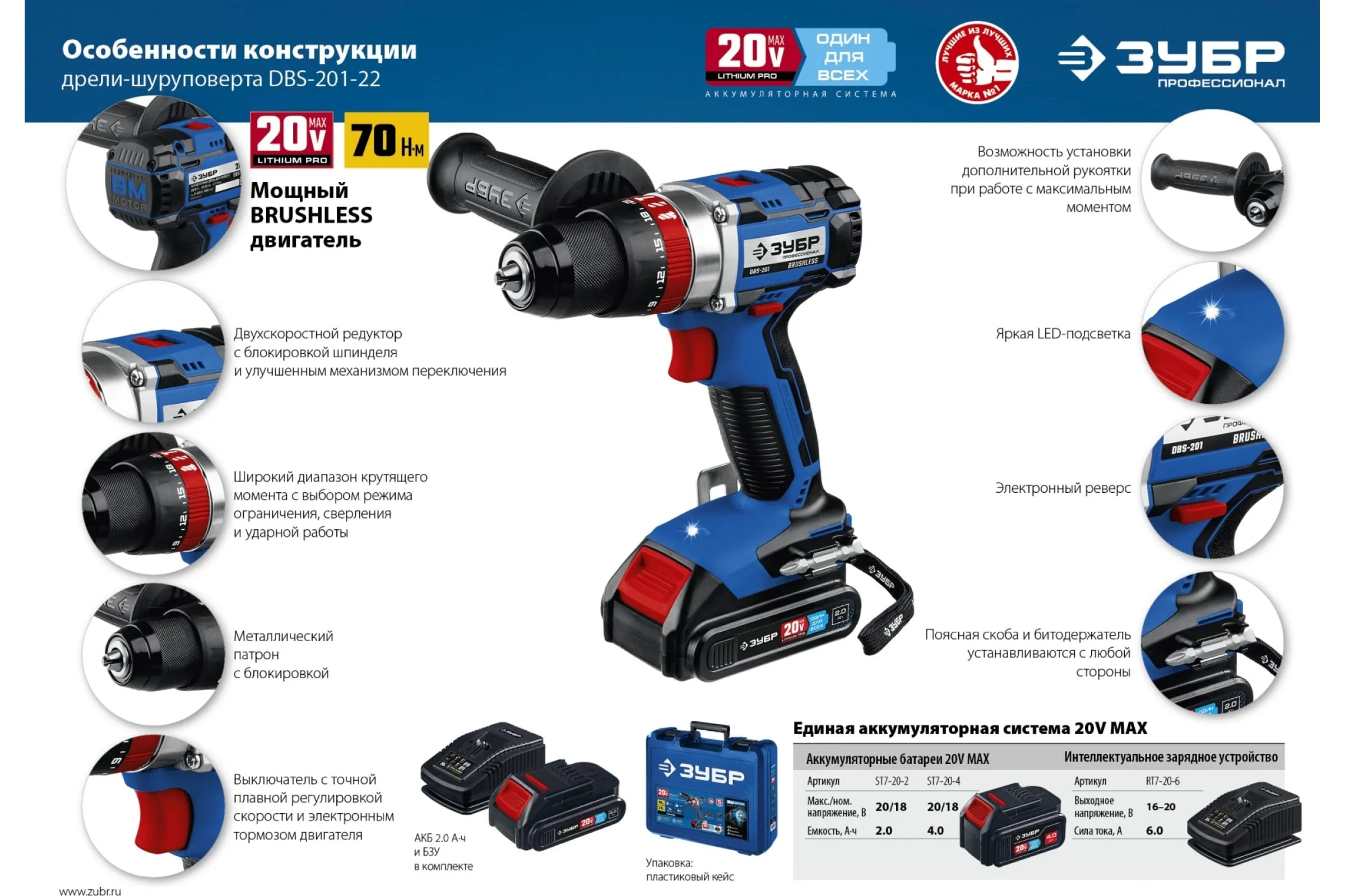 Бесщеточная ударная дрель-шуруповерт ЗУБР Профессионал DBS-201-22