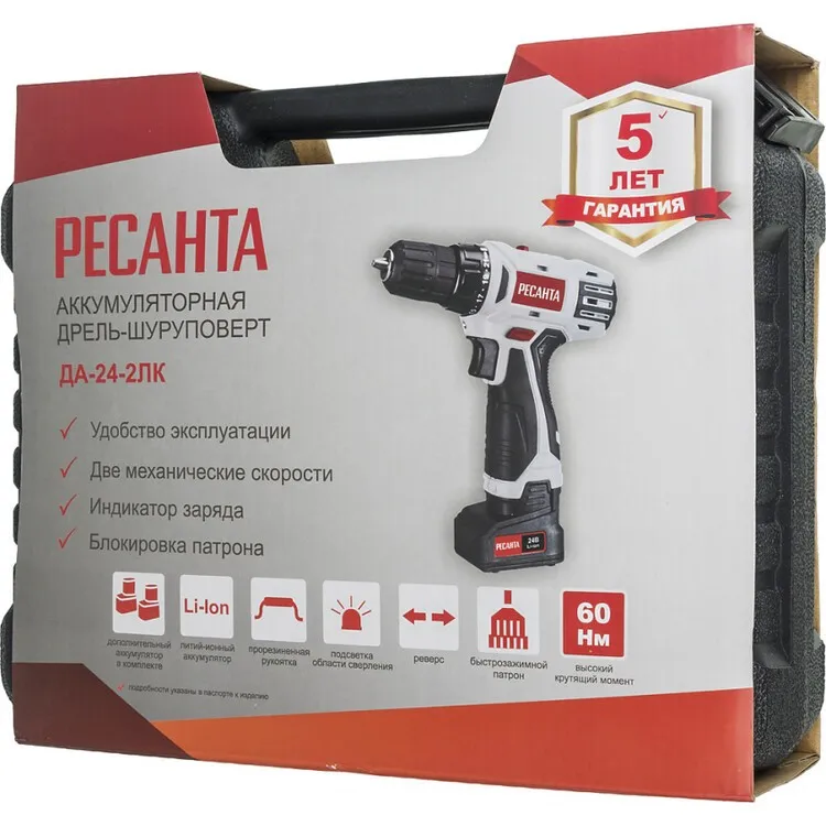 Дрель-шуруповерт аккумуляторная ДА-24-2ЛК Ресанта