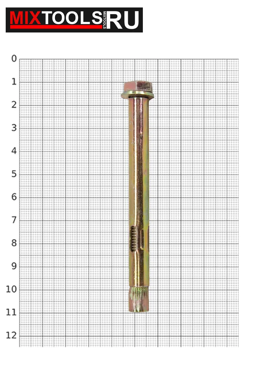Анкерный болт 10x100 предназначен для крепления тяжеловесных материалов и конструкций к потолку, стенам, наклонным поверхностям из кирпича, бетона, камня. Анкер сделан из оцинкованной стали с двойной пассивацией, улучшающей антикоррозионное свойство крепежного элемента. Перед установкой необходимо проверить выдержит ли крепление нагрузку монтируемой детали. Рекомендуемая рабочая нагрузка не должна превышать 25% от максимальной нагрузки на вырывание. Для установки сверлится отверстие, номеналом равным внешнему диаметру анкера на глубину рекомендованную изготовителем или же по норме в среднем 2-3 см. Отверстие тщательно очищается от пыли. Крепежный элемент,с сразу установленной на него монтируемой деталью, вставляется в отверстие и забивается на нужную глубину легкими ударами молотка. Затяжку рекомендуется отрегулировать при помощи ключа во избежание недостаточной устойчивости крепления к основанию. Для извлечения анкерного болта можно просто выкрутить ключом гайку в обратную сторону, таким образом открепив о