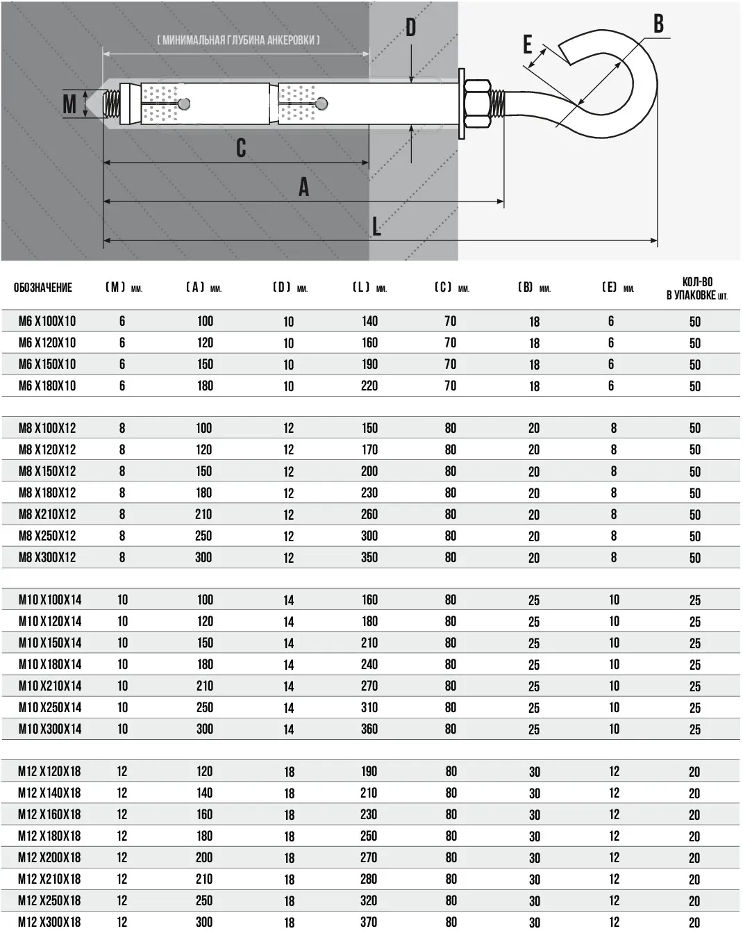 Анкер двухраспорный с полукольцом 6×100×10мм