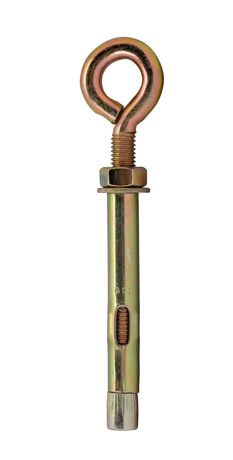 Данный вид анкера используют для крепления подвесных конструкций с применением гибких элементов, таких как цепи, тросы и канаты. Используются анкерные болты на строительных площадках. Изделие состоит из таких элементов как распорный конус с внутренней резьбой, болт с головкой-кольцом, гайка и распорный конус.Анкерный болт с кольцом пользуется большой популярностью, за счет удобства монтажа и надежности крепления.