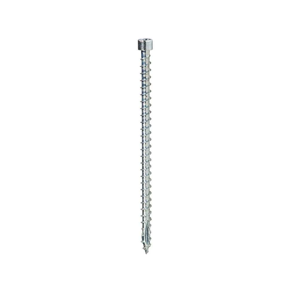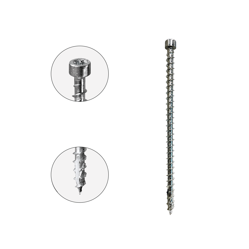 Шуруп конструкционный по дереву с цилиндрической головкой, полной резьбой и цинковым покрытием 100 × 6 изготовлен из закаленной стали, имеет острый наконечник и полную резьбу, что обеспечивает надежное и крепкое сцепление без зазоров с деревом. Цилиндрическая головка помогает равномерно распределять нагрузку на крепежную точку и предотвращать деформацию или повреждение крепляемого материала. Размер шлица Tx30 , тип шлица – TORX, благодаря чему при использовании специальных инструментов монтаж и демонтаж крепежного элемента становится быстрее. Конструкционные шурупы по дереву предназначены для соединения таких деревянных конструкций, как: полы, потолки, стены, крыши и т.д.