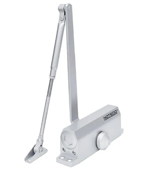 Доводчик дверной серебристого цвета, механо-гидравлический, двухскоростной, серия "Лёгкий характер", усилие EN3-EN5, с рычажной тягой, для дверей весом до 120 кг