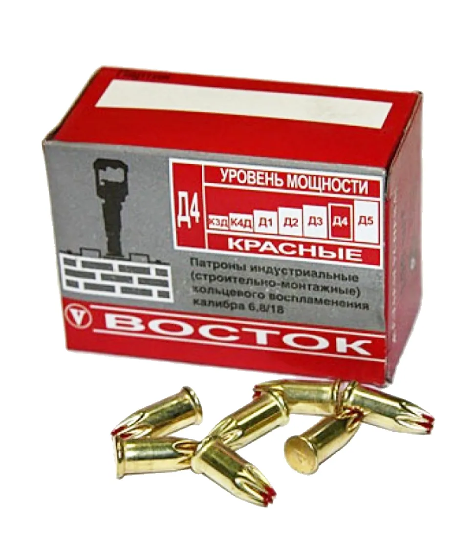 Патрон монтажный Д-4 красный (100 шт.) Предназначен для забивки дюбель-гвоздей для монтажного пистолета в строительные конструкции, изготовленные из бетона, железобетона, низкоуглеродной стали и в кирпичную кладку при выполнении креплений к ним строительных элементов