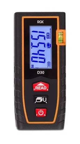 Диапазон измерений — от 0,15 до 30 метров при точности ±2мм на всей дистанции. Этого достаточно для работы в квартирах и офисах, включая небольшие коридоры и конференц-залы. Дальномер RGK D30 заинтересует как дизайнеров и специалистов по ремонту, так и владельцев квартир и частных домов, желающих самостоятельно выполнить ремонт, перепланировку или перестановку мебели.