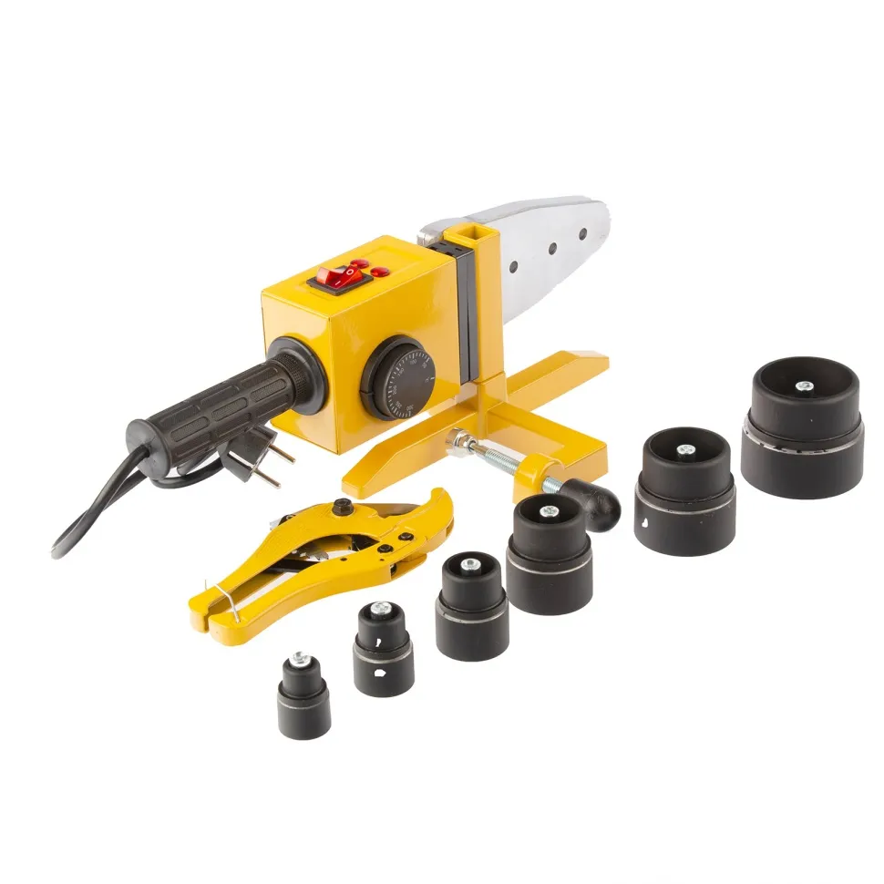 - Аппарат для сварки палстиковых труб - 1 шт, Имбусовый ключ - 1 шт, Труборез - 1 шт, Металлический кейс для хранения - 1 шт, Парные сменные насадки - 6 шт, Руководство по эксплуатации и гарантийный талон - 1 шт