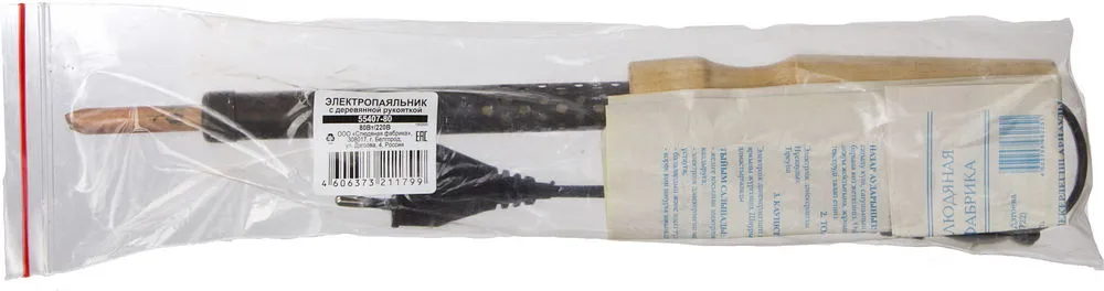 Электропаяльник с деревянной рукояткой, 80Вт