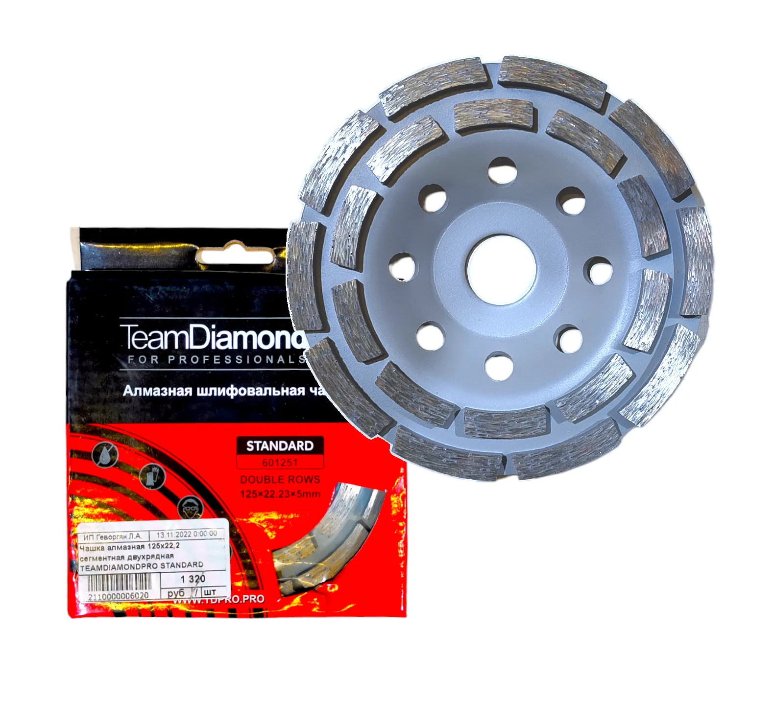 Чашка алмазная 125х22,2 сегментная двухрядная TEAMDIAMONDPRO STANDARD
