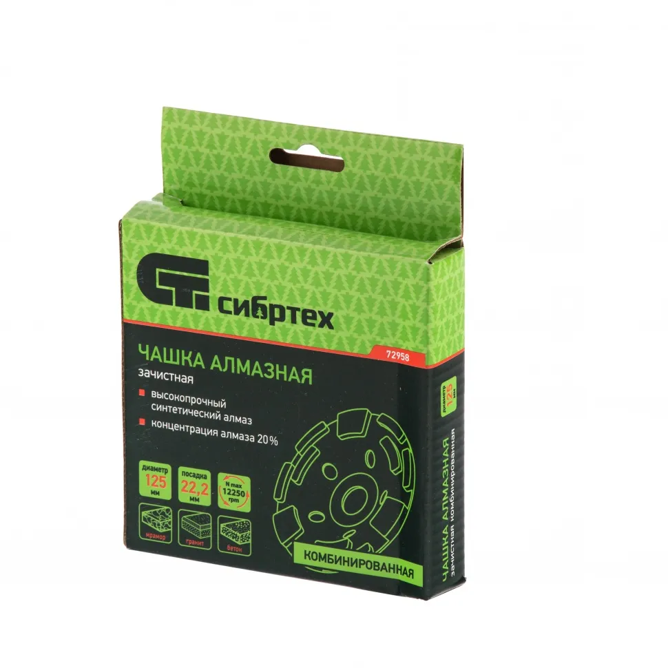 Комбинированная зачистная алмазная чашка Сибртех 72958 за счет сегментов разной формы эффективно справляется как с поэтапной черновой обработкой, так и с выравниванием, доведением до гладкости бетонных, мраморных, каменных, кирпичных и гранитных поверхностей. Она рассчитана на бытовое применение, пригодится в ходе проведения ремонтных работ, снятия слоя штукатурки и т.д. Чашка с посадочным отверстием 22,2 мм используется в качестве оснастки на УШМ аналогичного размера.ПреимуществаКачественное исполнение чашки, концентрация алмазов 20% обеспечивает комфортную и быструю работу.Корпус выполнен из прочной стали и покрыт эмалью для защиты от коррозии.Высокий ресурс чашки достигается благодаря сегментам высотой 5 мм с высокопрочными синтетическими алмазами.Конструкция чашки со специальными отверстиями способствует эффективному отводу шлама.