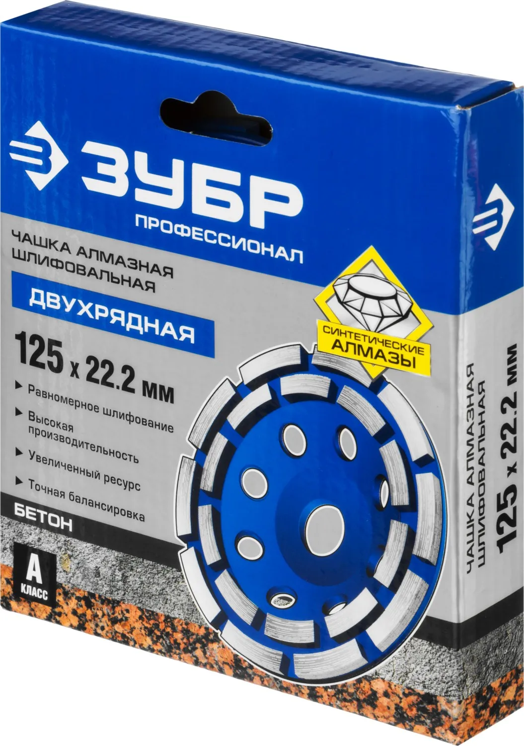 Чашка ЗУБР алмазная сегментная двухрядная, высота 22,2мм, 125мм