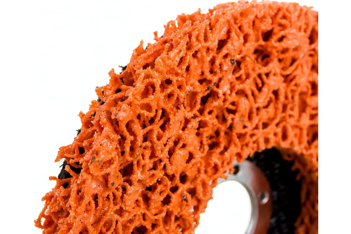Зачистной полимерный(нейлоновый) круг предназначен для УШМ. Посадка 22,2 мм. Обеспечивает мягкую очистку поверхности от: Ржавчины, коррозии, старой краски, клея, эпоксидных покрытий и других загрязнений. Не снимает металл и не изменяет форму поверхности. Обрабатываемые материалы: сталь и нержавеющая сталь(INOX), дерево, пластмасса, композитные материалы. Материал: инстурментальная сталь, нейлоновые волокна с абразивным слоем из карбида кремния.
