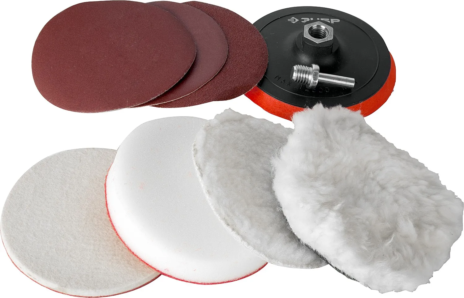 Набор ЗУБР "ЭКСПЕРТ" насадки полировальные для дрели/УШМ, 125мм, 7шт