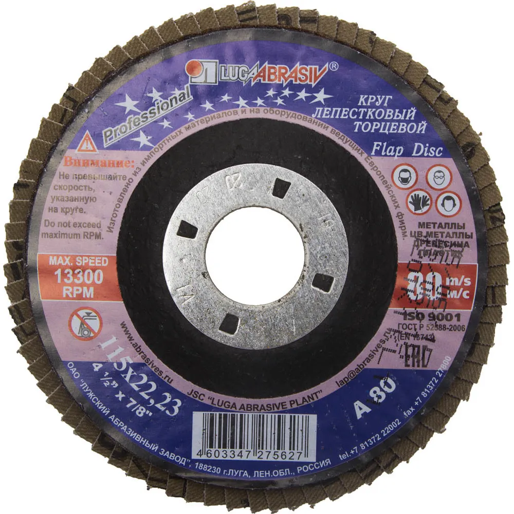 Круг лепестковый торцевой Луга 115х22,2мм тип КЛТ1 Р80