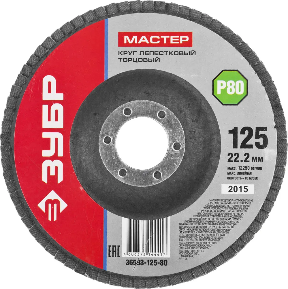 Круг лепестковый ЗУБР P80 125х22.2мм шлифовальный 36593-125-80