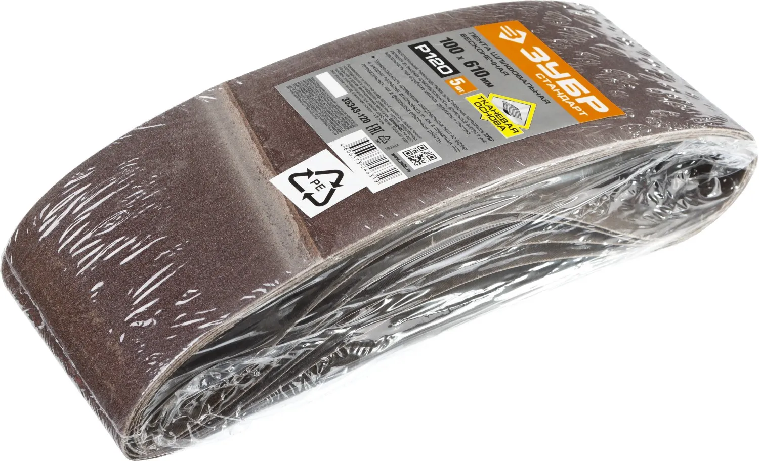 ЗУБР 100 х 610 мм, P120, лента шлифовальная СТАНДАРТ, для ЛШМ, 5 шт.