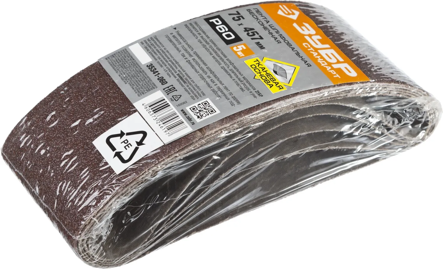 ЗУБР 75х457 мм, P60, лента шлифовальная СТАНДАРТ, для ЛШМ, 5 шт.