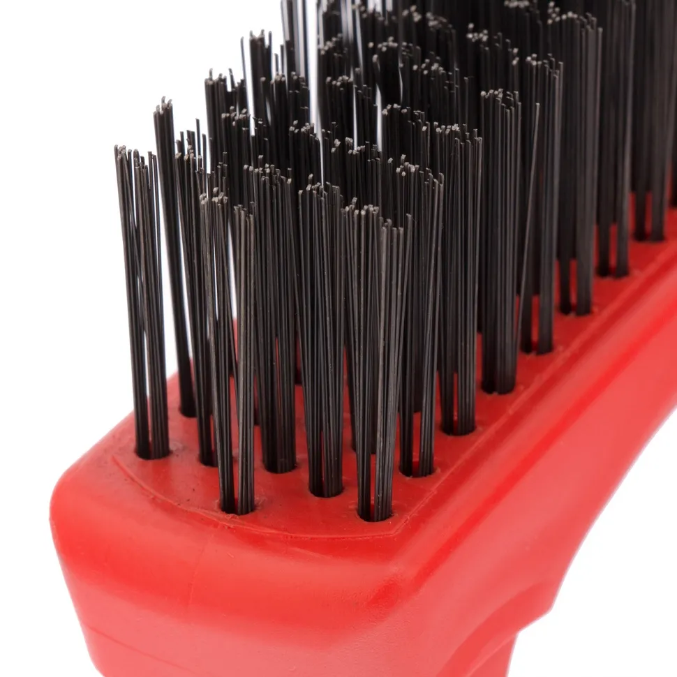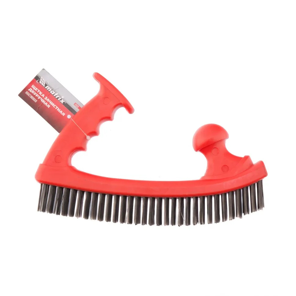 Двуручная пластиковая зачистная щетка Matrix 74830 эффективно очищает металлические, деревянные и другие поверхности от въевшихся загрязнений, ржавчины, старых лакокрасочных покрытий. 5-рядная щетина обеспечивает высокую скорость обработки. Двуручная конструкция позволяет проводить зачистку со значительным усилием. Щетка пригодится строителям, ремонтникам, автослесарям, а также будет полезна в быту.ПреимуществаЩетина изготовлена из прочной стальной проволоки и устойчива к деформациям при высоких нагрузках.Проволока надежно закреплена в основании и не выпадает во время работы.Прочный пластиковый корпус не подвержен коррозии и рассыханию, поэтому щетка прослужит долго.Эргономичные рукоятки обеспечивают надежный хват, что повышает комфорт во время работы.