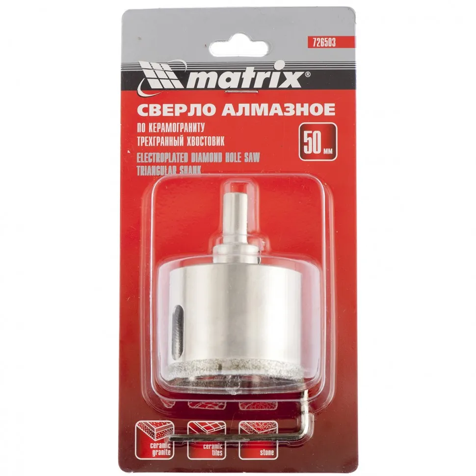 Сверло алмазное по керамограниту, 50 х 67 мм, 3-гранный хвостовик// Matrix