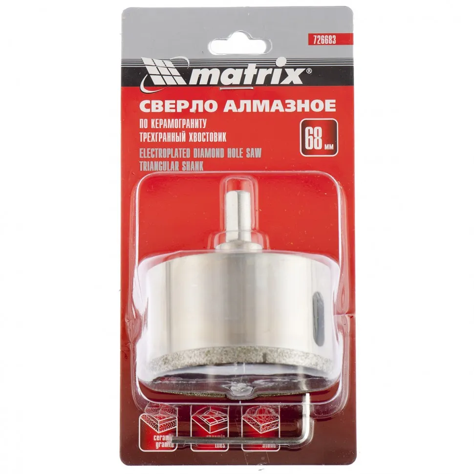 Сверло алмазное по керамограниту, 68 х 67 мм, 3-гранный хвостовик// Matrix