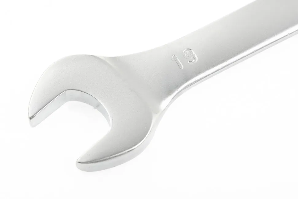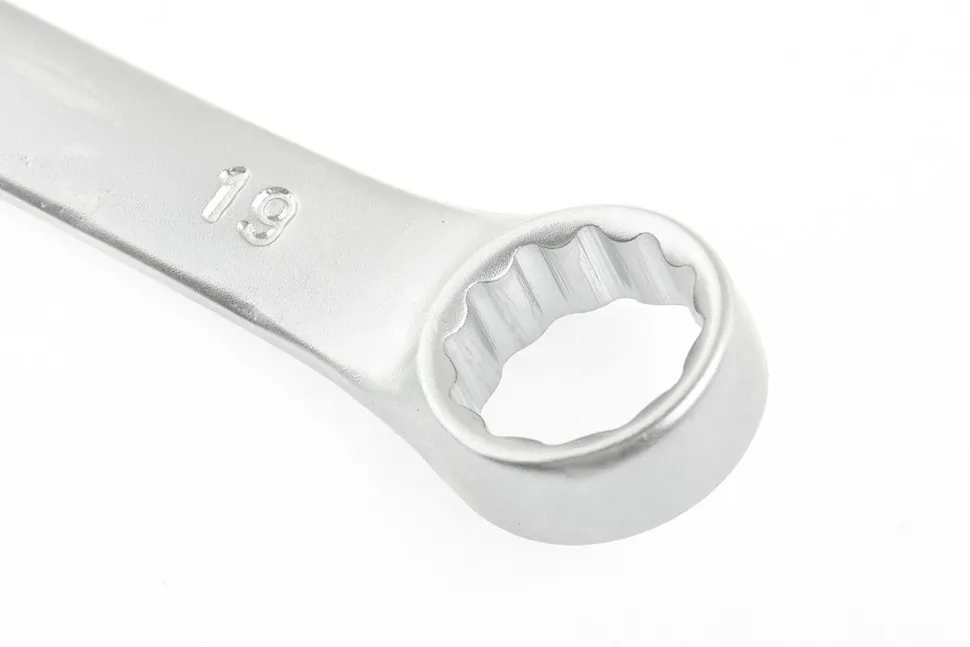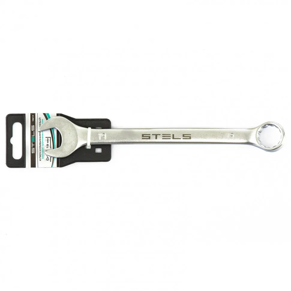 Комбинированный ключ Stels 15214 из стали CrV, 19 мм, покрытый матовым хромом, используется для закручивания и откручивания гаечных и болтовых соединений. Накидная головка имеет 12-гранную внутреннюю поверхность, что облегчает работу с крепежом и уменьшает опасность его повреждения. Ключ применяется в слесарных мастерских и автосервисах, а также будет полезен для решения бытовых задач.ПреимуществаВысокий показатель прочности — ключ изготовлен из стали хромованадиевой группы, рабочая часть закалена до твердости 45 HRC.Матовое хромоникелевое покрытие — инструмент защищен от образования коррозии.Комфорт при монтаже в труднодоступных местах — кольцевой зев наклонен под углом в 15 градусов к плоскости ключа.