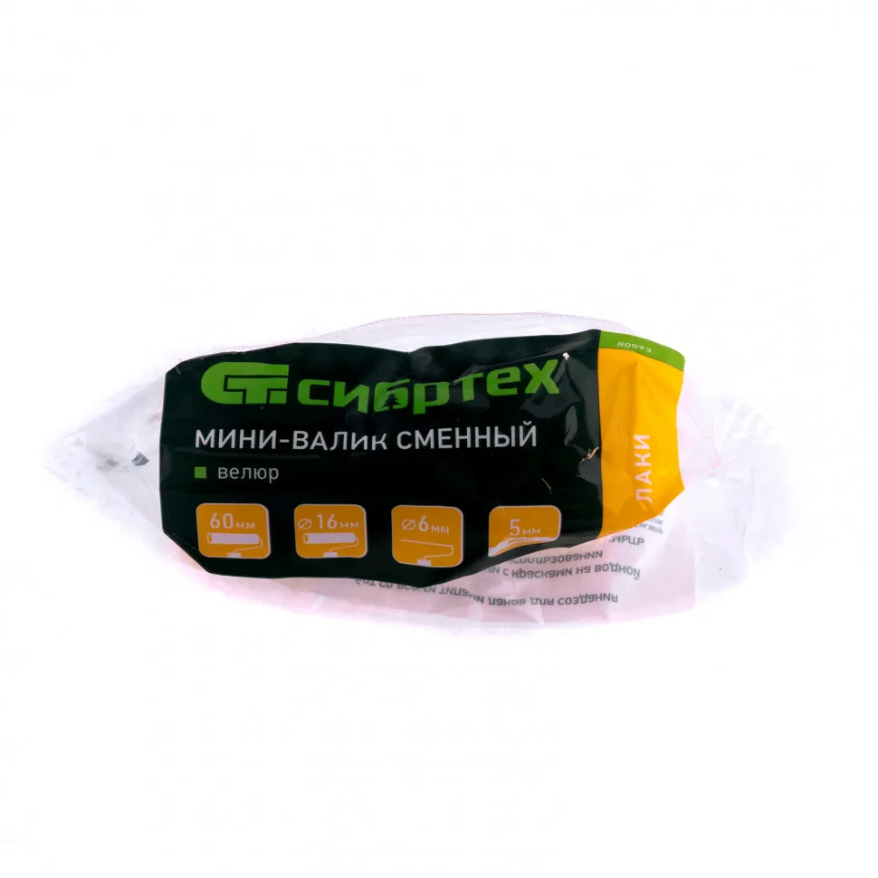 Мини-валик Сибртех сменный Лаки 60мм ворс 5мм D 16мм D ручки 6мм велюр 80593