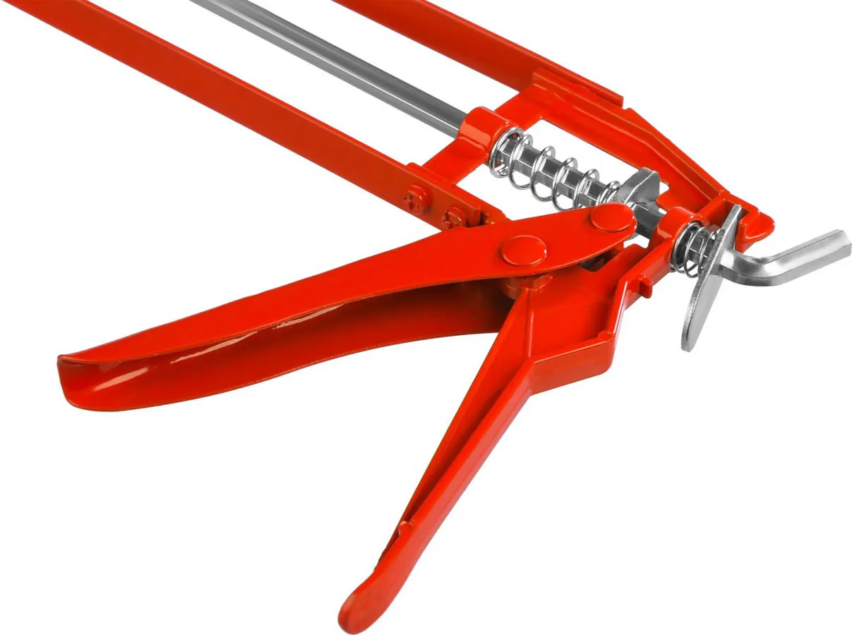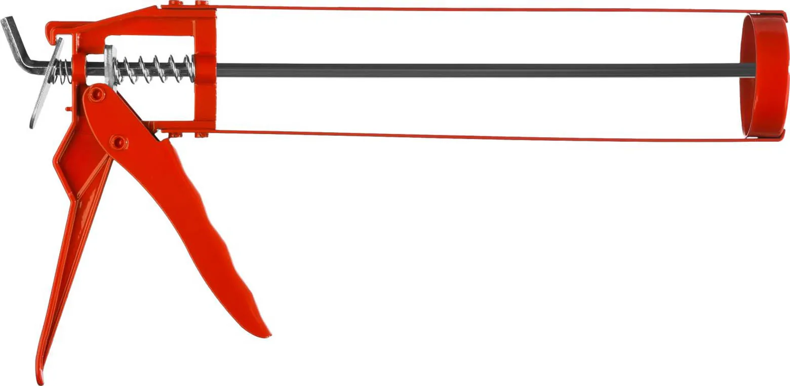 Пистолет для герметиков подходит для работы с картриджами объемом 310 мл, имеет скелетную конструкцию из стали, ручку из алюминиевого сплава, которые способствуют равномерной подачи клея либо герметика. для картриджей 310 мл, шестигранный оцинкованный шток, стальной корпус