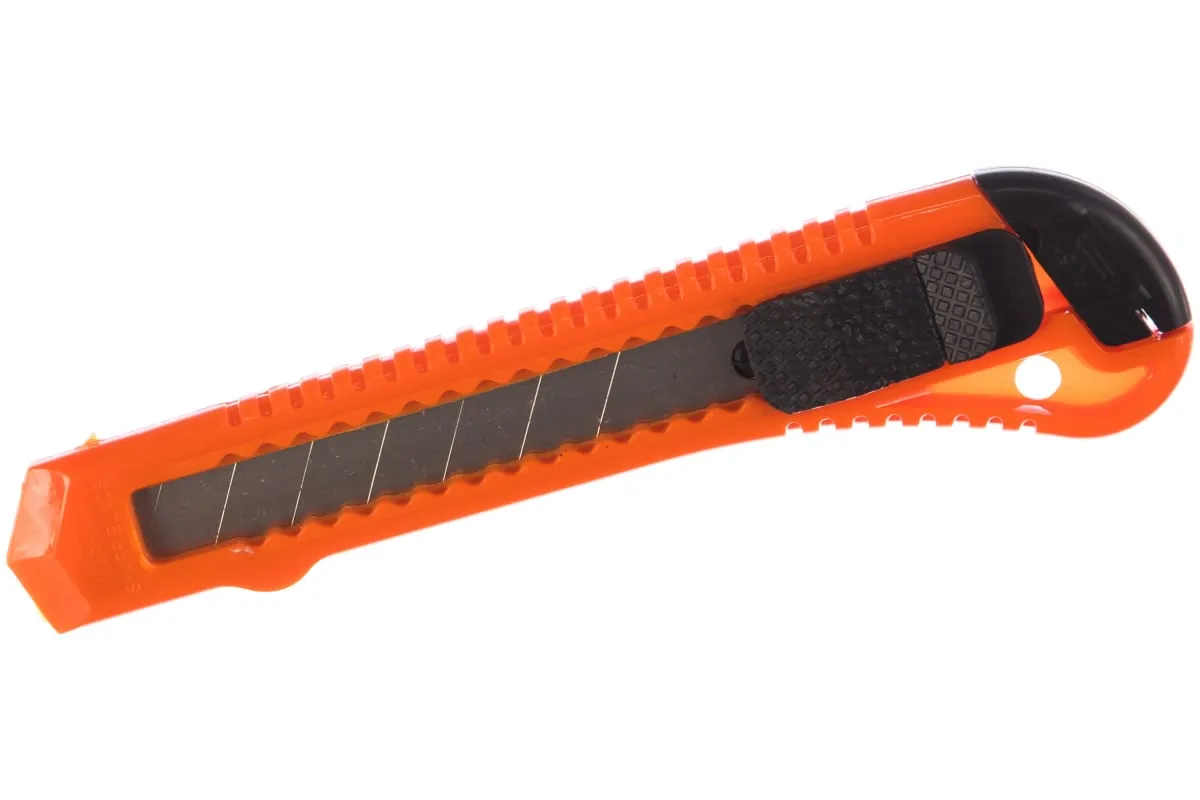 Нож Sparta 78974 с выдвижным лезвием шириной 18 мм пригодится для резки тонких материалов: бумаги, картона, обоев. Выдвижная конструкция ножа повышает удобство и безопасность работы, позволяя контролировать длину лезвия и быстро задвигать его с помощью специального бегунка.ПреимуществаЛезвие выполнено из прочной стали 60, долго сохраняет режущие свойства.Сегментированное лезвие можно обломать при затуплении кромки и использовать нож дальше.При необходимости можно легко сменить лезвие через хвостовую часть ножа.Корпус ножа выполнен из пластика и весит всего 32 г, поэтому с ним комфортно работать на протяжении длительного времени.