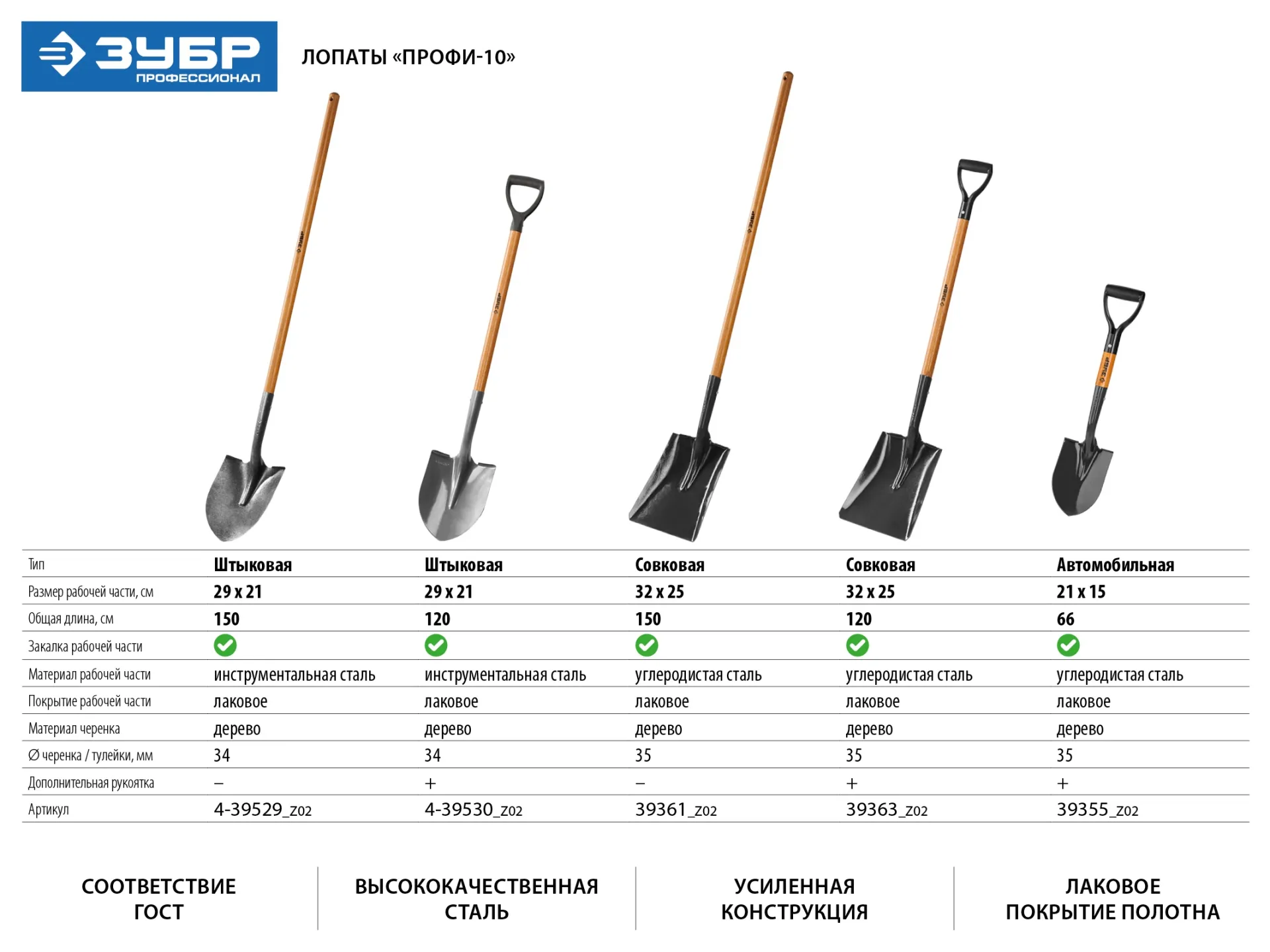 Лопата "Профи-10" совковая, деревянный черенок, с рукояткой, ЗУБР Профессионал