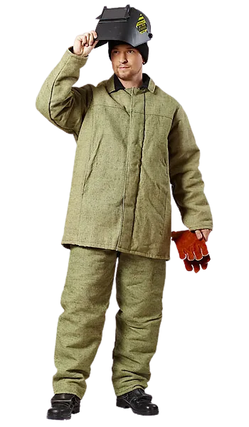 Брезентовый костюм сварщика защищает при попаданиях горячих элементов на работника. Высокое качество материала обеспечивает длительное использование.