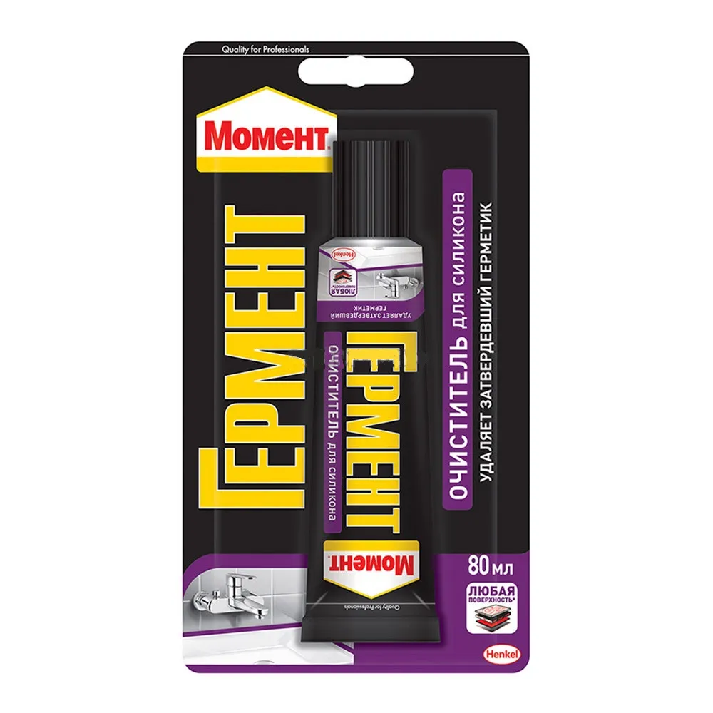 Очиститель силиконового герметика «Момент» представляет собой вязкий гель, который разрушает затвердевший герметик и облегчает его удаление. Является идеальным средством для очистки швов, совместим с керамической плиткой, большинством пластиков, металлов, стекла и окрашенных поверхностей.