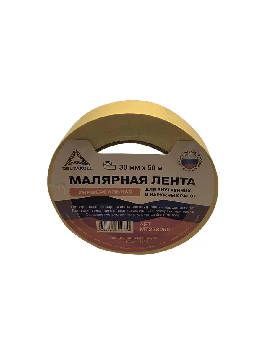 Лента малярная DeltaRoll Желтая универсальная для внутренных и наружных работ 30ммХ50м MT223050