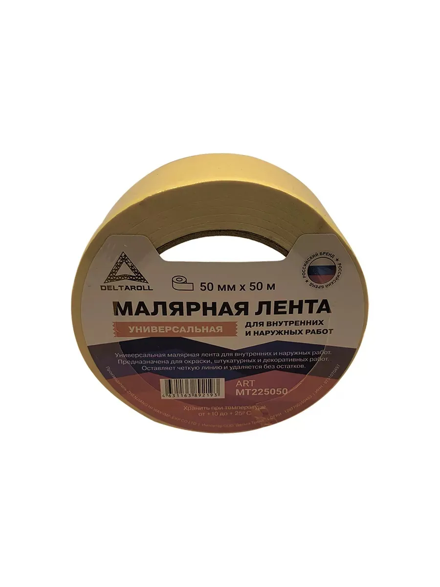 Лента малярная DeltaRoll Желтая универсальная для внутренных и наружных работ 50ммХ50м MT225050