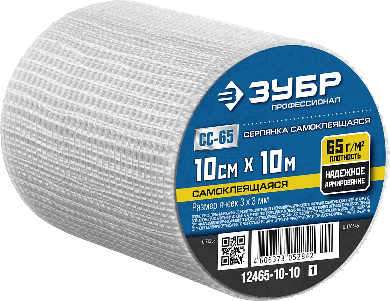Серпянка самоклеящаяся СС-65, 10см х 10м, ЗУБР Профессионал 12465-10-10