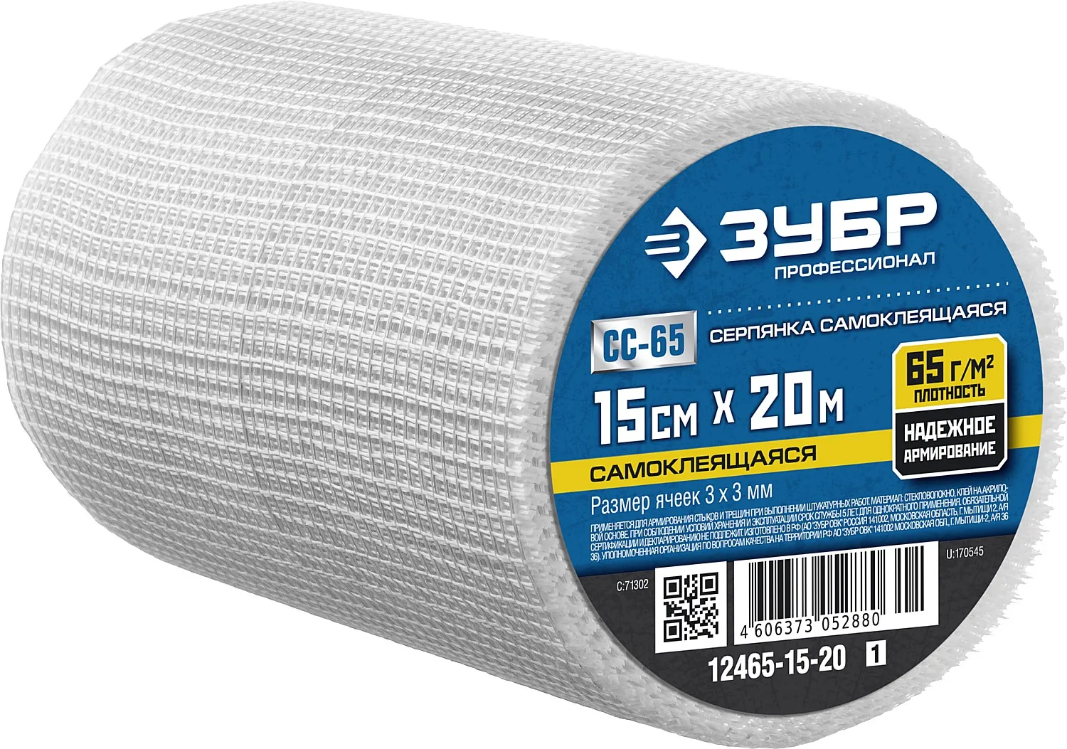 Серпянка самоклеящаяся СС-65, 15см х 20м, ЗУБР Профессионал 12465-15-20