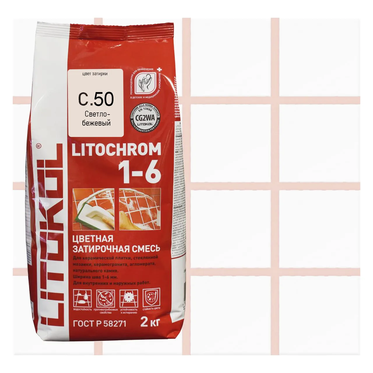 Затирка цементная Litokol Litochrom 1-6 цвет C 50 Светло-бежевый 2кг - это материал, используемый для заделки швов между керамической плиткой на стенах и полах. Одной из особенностей затирки Litokol Litochrom 1-6 является ее высокая прочность и устойчивость к механическим воздействиям, таким как износ и трение. Эта затирка отличается высокой устойчивостью к морозу, что делает ее идеальным выбором для укладки керамической плитки на открытых пространствах. Затирка Litokol Litochrom 1-6 также обладает высокой водонепроницаемостью, что делает ее идеальным выбором для укладки керамической плитки на поверхностях, которые могут подвергаться действию воды или пара. Кроме того, Litochrom 1-6 имеет отличную адгезию к различным поверхностям, таким как бетон, кирпич и гипсокартон. Она может использоваться в различных помещениях, включая ванные комнаты, кухни, бассейны, а также на террасах и внешних фасадах зданий.