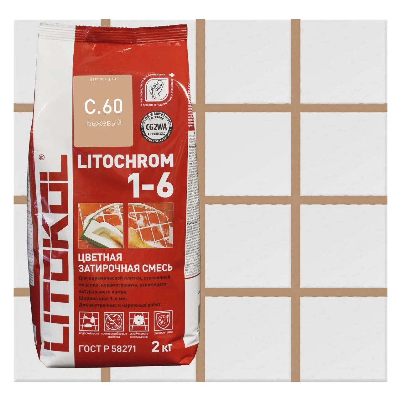 Затирка цементная Litokol Litochrom 1-6 цвет C 60 Багама-бежевый 2кг - это материал, используемый для заделки швов между керамической плиткой на стенах и полах. Одной из особенностей затирки Litokol Litochrom 1-6 является ее высокая прочность и устойчивость к механическим воздействиям, таким как износ и трение. Эта затирка отличается высокой устойчивостью к морозу, что делает ее идеальным выбором для укладки керамической плитки на открытых пространствах. Затирка Litokol Litochrom 1-6 также обладает высокой водонепроницаемостью, что делает ее идеальным выбором для укладки керамической плитки на поверхностях, которые могут подвергаться действию воды или пара. Кроме того, Litochrom 1-6 имеет отличную адгезию к различным поверхностям, таким как бетон, кирпич и гипсокартон. Она может использоваться в различных помещениях, включая ванные комнаты, кухни, бассейны, а также на террасах и внешних фасадах зданий.